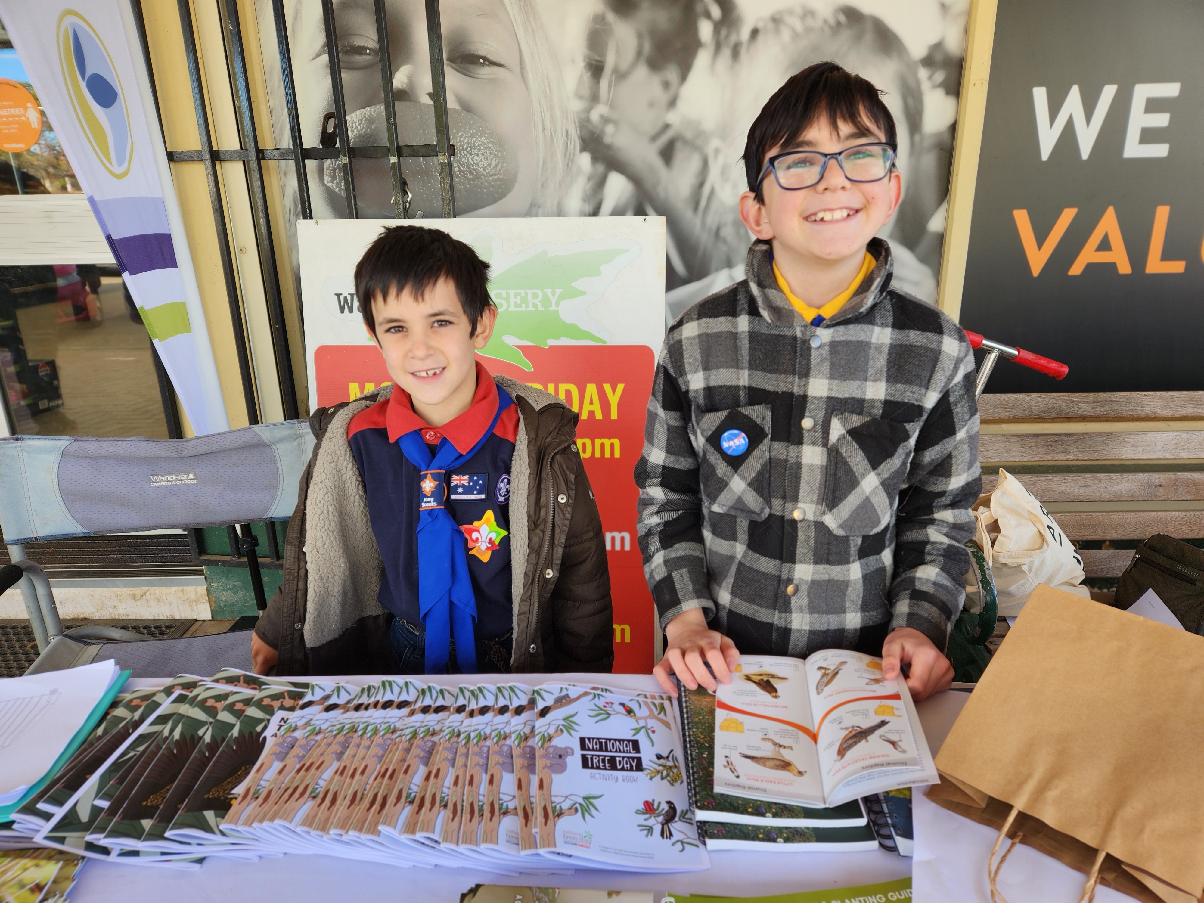 On a busy day at 'The Rock' the scouts were a great help giving out information brochures and trees to willing customers.